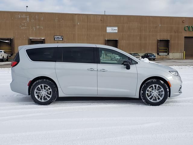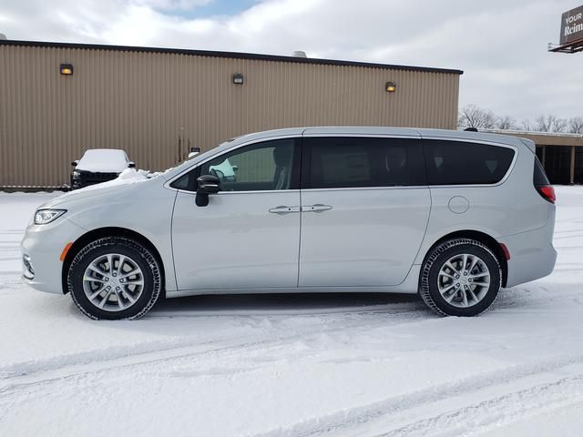Silver Mist Clearcoat 2026 Chrysler Pacifica Select AWD 9-Speed 948TE Automatic 3.6L V6 24V VVT 10.1" Touchscreen Display, 18" x 7.5" Painted Aluminum Wheels, 3.73 Axle Ratio, 3rd row seats: split-bench, 4-Wheel Disc Brakes, 4G LTE Wi-Fi Hot Spot, 6 Speakers, ABS brakes, Air Conditioning, Alloy wheels, AM/FM radio: SiriusXM, Apple CarPlay, Apple CarPlay/Android Auto, Auto-dimming Rear-View mirror, Automatic temperature control, AWD Suspension, Black Seats, Brake assist, Bumpers: body-color, Caprice Leatherette Bucket Seats, Compass, Connectivity - US/Canada, Delay-off headlights, Disassociated Touchscreen Display, Driver door bin, Driver vanity mirror, Driver's Seat Mounted Armrest, Dual front impact airbags, Dual front side impact airbags, Electronic Stability Control, Emergency communication system: Chrysler Connect, For Details, Visit DriveUconnect.com, Four wheel independent suspension, Front anti-roll bar, Front Bucket Seats, Front dual zone A/C, Front fog lights, Front reading lights, Fully automatic headlights, Garage door transmitter, Google Android Auto, GPS Antenna Input, Heated door mirrors, Heated front seats, Heated steering wheel, Illuminated entry, Integrated Active Noise Cancellation, Integrated Center Stack Radio, Knee airbag, Low tire pressure warning, Memory seat, MyFlexCare Service Plan, Occupant sensing airbag, Outside temperature display, Overhead airbag, Overhead console, Panic alarm, ParkView Rear Back-Up Camera, Passenger door bin, Passenger seat mounted armrest, Passenger vanity mirror, Power door mirrors, Power driver seat, Power Liftgate, Power steering, Power windows, Quick Order Package 27L, Radio data system, Radio: Uconnect 5 with 10.1" Display, Rain sensing wipers, Rear air conditioning, Rear reading lights, Rear window defroster, Rear window wiper, Reclining 3rd row seat, Remote keyless entry, Security system, Speed control, Split folding rear seat, Spoiler, Steering wheel mounted audio controls, Tachometer, Telescoping steering wheel, Tilt steering wheel, Traction control, Trip computer, Turn signal indicator mirrors, USB Host Flip, Variably intermittent wipers, Voltmeter, Wheels: 18" x 7.5" Polished Aluminum Design 1. Price includes: $3500 - 2026 National Retail Bonus Cash . Exp. 03/31/2026 $500 - 2026 Great Lakes BC Retail Bonus Cash. Exp. 03/31/2026