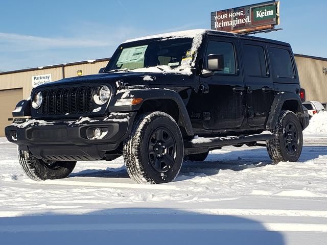 black clearcoat 2026 Jeep Wrangler Sport 4WD 8-Speed Automatic 3.6L V6 24V VVT 12.3" Touchscreen Display, 3.45 Overall Top Gear Ratio, 4-Wheel Disc Brakes, 4G LTE Wi-Fi Hot Spot, 8 Speakers, ABS brakes, Air Conditioning, AM/FM radio: SiriusXM with 360L, Apple CarPlay, Apple CarPlay/Android Auto, Aux Battery, Black 3-Piece Hard Top, Brake assist, Compass, Connectivity - US/Canada, Deep Tint Sunscreen Windows, Delay-off headlights, Driver door bin, Driver vanity mirror, Dual front impact airbags, Dual front side impact airbags, Electronic Stability Control, For More Info, Call 800-643-2112, Freedom Panel Storage Bag, Front anti-roll bar, Front Bucket Seats, Front Center Armrest w/Storage, Front fog lights, Front reading lights, Google Android Auto, Illuminated entry, Integrated Center Stack Radio, Integrated roll-over protection, Low tire pressure warning, MOPAR All-Weather Floor Mats, Mopar Black Tubular Side Steps, MOPAR Satin Black Grille with Satin Black Ring, Myflexcare Service Plan, No Soft Top, Non-Lock Fuel Cap Without Discriminator, Normal Duty Suspension, Occupant sensing airbag, Outside temperature display, Overhead airbag, Panic alarm, ParkView Rear Back-Up Camera, Passenger door bin, Passenger vanity mirror, Power steering, Power windows, Quick Order Package 24B Sport, Radio data system, Radio: Uconnect 5 with 12.3" Display, Rear anti-roll bar, Rear reading lights, Rear Window Defroster, Rear Window Wiper/Washer, Remote keyless entry, SiriusXM Radio Service, SiriusXM with 360L, Speed control, Split folding rear seat, Steering wheel mounted audio controls, Stop-Start Dual Battery System, Tachometer, Telescoping steering wheel, Tilt steering wheel, Traction control, Trip computer, Variably intermittent wipers, Wheels: 17" x 7.5" Black Steel Styled. Price includes: $1000 - 2026 Great Lakes BC Select Inventory Bonus Cash. Exp. 03/31/2026 $1000 - 2026 National Retail Bonus Cash . Exp. 03/31/2026