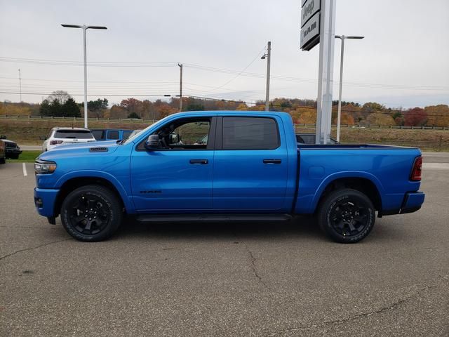 Hydro Blue Pearlcoat 2026 Ram 1500 Big Horn/Lone Star 4WD 8-Speed Automatic 3.0L I6 115V Auxiliary Power Outlet, 115V Auxiliary Rear Power Outlet, 12" Touchscreen Display, 2nd Row in Floor Storage Bins, 3 Rear Seat Head Restraints, 4 Way Front Headrests, 4-Wheel Disc Brakes, 400W Inverter, 48V Belt Starter Generator, 4G LTE Wi-Fi Hot Spot, 6 Speakers, 9 Amplified Speakers with Subwoofer, ABS brakes, Accent Color Door Handles, Accent Color Premium Power Mirrors, Accent Color Tailgate Handle, Air Conditioning, Air Conditioning ATC with Dual Zone Control, Alloy wheels, AM/FM radio, Anti-Spin Differential Rear Axle, Apple CarPlay, Apple CarPlay/Android Auto, Auto High-beam Headlights, Auto Power-Folding Mirrors, Auto-Dimming Exterior Driver Mirror, Auto-Dimming Rear-View Mirror, Big Horn Level 2 Equipment Group, Black Exterior Mirrors, Black Exterior Truck Badging, Black Headlamp Bezels, Black Interior Accents, Black Painted Exterior Mirrors Caps, Black Premium Power Mirrors, Black Tail Lamp Bezels, Body Color Fender Flares, Body Color Front Bumper, Body Color Rear Bumper with Step Pads, Brake assist, Bucket Seats, Bumpers: chrome, Center Console Parts Module, Cloth Bucket Seats, Cluster 12" TFT Color Display, Cluster 7.0" TFT Color Display, Compass, Configurable Drive Mode, Connected Travel and Traffic Services, Connectivity - US/Canada, Convex Wide-Angle Exterior Mirror Insert, Delay-off headlights, Deluxe Cloth Bucket Seats, Disassociated Touchscreen Display, Dome Dual LED Reading Lamp, Driver door bin, Dual Exhaust with Black Tips, Dual front impact airbags, Dual front side impact airbags, Dual-Pane Panoramic Sunroof, Electronic Stability Control, Exterior Mirrors Courtesy Lamps, Exterior Mirrors with Heating Element, Exterior Mirrors with Supplemental Signals, Front anti-roll bar, Front Bucket Seats, Front Center Armrest w/Storage, Front fog lights, Front License Plate Bracket, Front reading lights, Front Seat Back Map Pockets, Front wheel independent suspension, Full Length Floor Console, Fully automatic headlights, Global Telematics Box Module, Glove Box Lamp, Google Android Auto, GPS Antenna Input, GPS Navigation, Grille Black Surround Black Mesh, HD Radio, Heated door mirrors, Heated Front Seats, Heated Steering Wheel, Illuminated entry, Integrated Center Stack Radio, Integrated Voice Command with Bluetooth, Leather Wrapped Steering Wheel, LED Dome Lamp with on/Off Switch, LED Footwell Lighting, Low tire pressure warning, Manual Adjust 4-Way Driver Seat, Manual Adjust 4-Way Front Passenger Seat, Manual Folding Exterior Mirrors, Media Hub with 2 Charge Only USBs, Mopar Black Tubular Side Steps, MOPAR Front and Rear Rubber Floor Mats, MyFlexCare Service Plan, Night Edition, Occupant sensing airbag, Outside temperature display, Overhead airbag, Overhead console, Overhead LED Lamps, Panic alarm, ParkView Rear Back-Up Camera, Passenger door bin, Passenger vanity mirror, Power 2-Way Driver Lumbar Adjust, Power Adjust 8-Way Driver Seat, Power Adjustable Pedals, Power door mirrors, Power steering, Power windows, Premium Overhead Console, Quick Order Package 21Z Big Horn, Radio data system, Radio: Uconnect 5 Navigation with 12.0" Display, Radio: Uconnect 5 W with 8.4" Display, RAM Grille Badge - Black, RAM Grille Badge - Chrome, Rear 60/40 Folding Seat, Rear anti-roll bar, Rear Center Armrest, Rear Power Sliding Window, Rear step bumper, Rear Wheelhouse Liners, Rear Window Defroster, Remote keyless entry, Remote Tailgate Release, Security Alarm, SiriusXM Radio Service, SiriusXM with 360L, Speed control, Steering Wheel Mounted Audio Controls, Sun Visors with Illuminated Vanity Mirrors, Supplier Part Tracking (J-1), Tachometer, Telescoping steering wheel, Tilt steering wheel, Traction control, Trip computer, Universal Garage Door Opener, USB Host Flip, Variably intermittent wip Price includes: $1500 - 2026 Great Lakes BC Select Inventory Bonus Cash w/ 5PD . Exp. 03/31/2026 $3500 - 2026 National Retail Bonus Cash . Exp. 03/31/2026